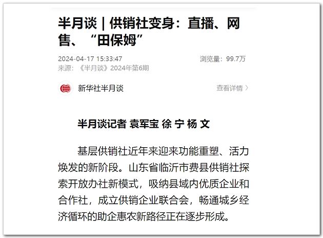“供銷社利用渠道優(yōu)勢,避開中間商收購倒賣,保障農(nóng)產(chǎn)品在收購端高于當(dāng)?shù)厥袌鰞r(jià),在零售端低于市場價(jià),使農(nóng)民和消費(fèi)者的利益都得到保障。”王慶華表示,2024年,費(fèi)縣供銷社將以開放辦社為抓手,持續(xù)建設(shè)數(shù)字供銷運(yùn)營平臺,暢通縣鄉(xiāng)村三級現(xiàn)代商貿(mào)流通服務(wù)網(wǎng)絡(luò),不斷筑牢供銷社“為農(nóng)、務(wù)農(nóng)、姓農(nóng)”根基。