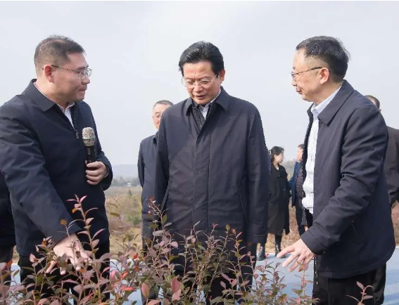 在秋錦山村,蔡邦銀一行實地查看了當地藍莓的種植情況,并就藍莓產量產值和市場銷售情況與相關負責人進行了深入交流。他要求,要從產業(yè)培育、精深加工等方面持續(xù)發(fā)力,不斷延伸藍莓產業(yè)鏈,進一步推動藍莓產業(yè)轉型升級,拓寬農民增收致富渠道,更好發(fā)揮項目聯(lián)農帶農的作用,為推進鄉(xiāng)村全面振興提供產業(yè)支撐。